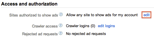 - Pada bagian "Akses & otorisasi", di samping "Situs yang diberi otorisasi untuk menampilkan iklan", klik edit.